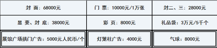 本届大会会刊,用32开( 210mm×140mm)进口铜版纸,精装印刷,在大会期间派发给参观人士。欢迎企业刊登广告版面及其它宣传方式,收费标准如下:(人民币)