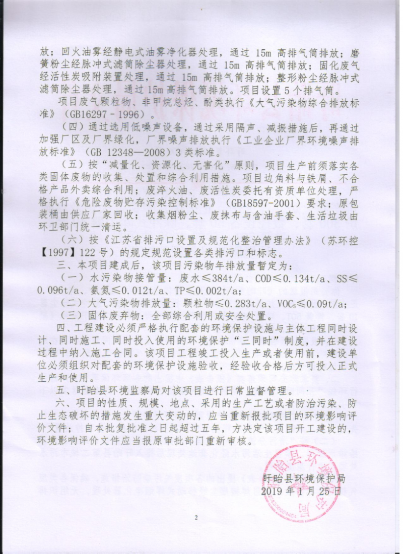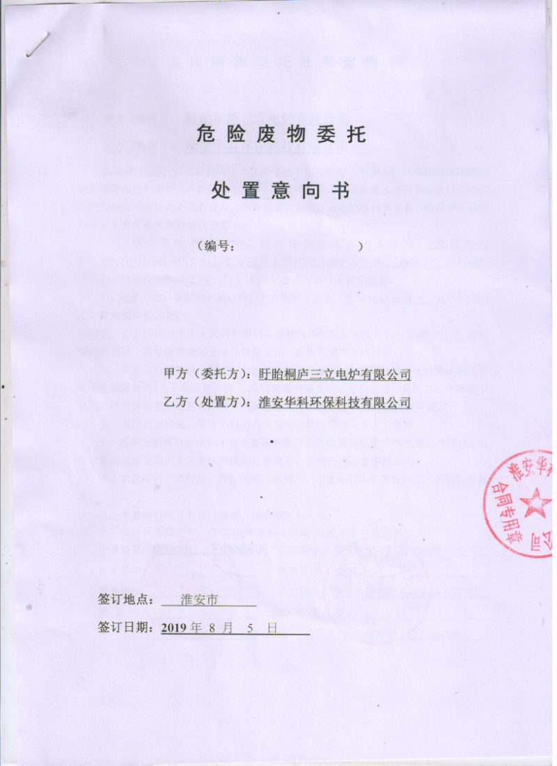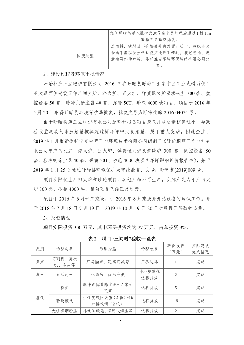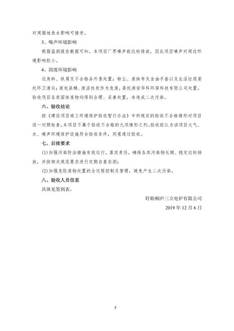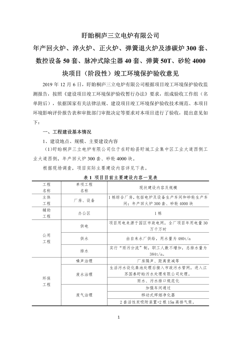 盱眙桐庐三立电炉有限公司环评三同时验收公告