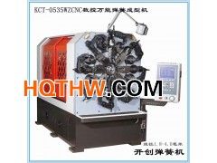 KCT-0535WZ数控万能弹簧机,多被行业称4.0转线弹簧机/35转线弹簧机/35翻线机,其标准加工线径为1.2-4.0mm,主要用于加工各种拉簧、压簧、单(双)扭簧、扁线簧、复杂异形簧及线成型产品。KCT-0535WZ万能弹簧机是开创公司于2010年成功研发并投入市场,机身自带转线系统和卷曲功能,得到了用户的广泛应用。此机型经过几年时间不断的实践应用,融入弹簧机成型新型核心技术,并增加了一些新的功能和特点,具有成型性能稳定、方便调试、精准度高等优点,以“快、准、稳”等特点著称。KCT-0535WZ数控万能弹簧机,利用台湾电脑程序控制、采用日本先进工业伺服电机、进口高精密轴承和高质量合金面板组成,透过CNC程式码可分别对送线系统和凸轮传动系统做同步控制,可达到24小时的精确运转。