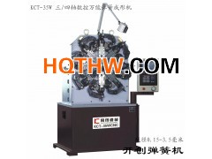 KCT-35W 三/四轴数控万能弹簧成形机,俗称35万能机(或35弹簧机),是一种电脑八爪机(电脑万能机),其标准生产线径为1.5-3.5mm,主要用来生产拉簧、扭簧及线材成型等产品。开创35万能机安装调试方便,生产效率高,产品精准度高。35W型数控卷簧机,采用日本进口伺服马达,有两种台湾系统供客户选择(京微系统和益图系统),送线轴,凸轮轴,螺距轴,可独立或同步运作。35W弹簧机可生产各种压簧、扭簧、拉簧及复杂的线成型产品等,本机调试方便,成型速度快,生产效率高,稳定性强。第三轴是针对推杆间距刀而增加的,更方便弹簧成型,节省了调试时间及模具成本,完成更具难度及要求的弹簧产品。