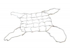 活底吊网具有底网及四角上系结的耳绳,属于货物搬运中的吊具附件。 货物搬运,尤其是港口的大宗粮食、化肥的装卸,普遍采用吊网,作业中,首先铺好底网,再向底网上码垛袋装货物。吊出后放在预定地点,松开耳绳,搬走货袋,然后,提起耳绳,移走底网,进行下一次吊装。由于一次搬运作业中,需要往返搬运货物各一次,装卸工人劳动强度大,装卸时间也较长。 针对搬运作业中采用的吊网暴露出的不足,提供一种只进行一次装入就可完成袋装货物搬运的活底吊网。通过采取措施来实现的。 底网由呈品字形,其底绳顺次相接的,两个尺寸相同的网片成为一组的两组网片构成;每根耳绳分别同相邻两个网片底绳相接;底网上还设置中点相接的两根分别穿过相邻两个网片的对应网格的连接绳,该连接绳的中点相接处还设置提绳,各绳未端均备有提环。首先将四个网片各相邻边对应相接摆放,网片底绳呈四方形,再将连接绳的各端绳由底网中心分别向网角方向依次穿过两个网片相邻的网格,即可以向底网上摆放袋装货物。摆放时,注意应保持连接绳的提绳提环处在码垛货物的上面。货物摆放完毕,即可将耳绳和连接绳提环分别套在对应的装卸吊勾进行提升。吊网在预定位置下落后,从装卸吊勾上分别摘下连接绳提环,并将露出码垛上面的提绳提环挂在装卸吊勾的中心吊勾上,当上提装卸吊勾时,提绳提环首先被上提,接着连接绳被从四个网片的相邻网格中抽出,四个网片散开,形成活底,整个吊网随装卸吊勾的上扬从货垛中抽出,完成一次搬运作业。 采用活底吊网,搬运过程中只需要一次货物装入,不但明显降低操作工劳动强度,搬运时间也可缩短三分之一左右。 活底吊网具有底网(1)及四角上系结的耳绳(2)。其底网(1)由呈品字形,底绳(3)顺次相接的,两个尺寸相同的网片(4)成为一组的两组网片构成。中点相接的连接绳(5)的两根端绳分别穿过相邻两个网片(4)的对应网格,其未端备有提环(7)。和连接绳中点相接处连接的提绳(6)未端也备有提环(7)。 构成底网的四个网片尺寸相同。为了免除垛高时挂提环的不便,还配置可事先勾扣耳绳和连接绳提环的提环绳勾。使用时,事先提环绳勾将各耳绳及连接绳提环勾扣在垛边,套挂装卸吊勾时则容易和方便得多。 如果两组网片尺寸不同,活底吊网呈长方形。为了防止搬运时掉货及保证吊运安全方便,可再对称配置与网片的长底绳中间相接的耳绳。要求1.一种活底吊网,该吊网具有底网及四角上系结的耳绳,其特征在于底网由呈品字形,其底绳顺次相接的,两个尺寸相同的网片成为一组的两组网片构成;每根耳绳分别同相邻两个网片底绳相接;底网上还设置中点相接的两根分别穿过相邻两个网片的对应网格的连接绳,该连接绳的中点相接处还设置提绳,各绳末端均备有提环。 2.根据权利要求1所述的活底吊网,其特征在于构成底网的四个网片尺寸相同。 3.根据权利要求1所述的活底吊网,其特征在于两组网片尺寸不同时,在两网片长底绳中间对称配置耳绳。 专利摘要一种底网由呈品字形,其底绳顺次相接的,两个尺寸相同的网片成为一组的两组网片构成;每根耳绳分别同相邻两个网片底绳相接;底网上还设置中点相接的两根分别穿过相邻两个网片的对应网格的连接绳,该连接绳的中点相接处还设置提绳,各绳末端均备有提环的活底吊网。采用活底吊网,搬运过程中只需要一次货物装入,不但明显降低操作工劳动强度,搬运时间也可缩短三分之一左右。