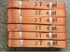 扁平吊装带是由高强度纤维原料经编织机织成工业织带并染色,然后经工业缝纫机缝制而成的。常用的主要有环形扁平吊装带和两头扣扁平吊装带两种。根据不同的使用环境条件,可以选用不同材质的纤维或特种纤维组成的织带,用不同的加工处理和车缝技巧可以做成满足不同使用要求的吊装带;目前根据大多数使用场合的要求,主要选用的材质为高强聚酯、尼龙、丙纶。扁平吊装带单根起吊力为40t,安全系数4-8倍。尼龙扁平化纤吊装带的安全负荷下延伸率小于8%,聚酯小于3%。扁平吊装带的性能优越:能够提供宽阔的、平顺的承载表面,在吊装有柔软表面的物体时特别适用。如需要还可以配以吊装带更宽的保护套来使用,由于没有金属的接触,对于被吊装物体的平滑及喷漆处理的表面造成的伤害极其轻微。